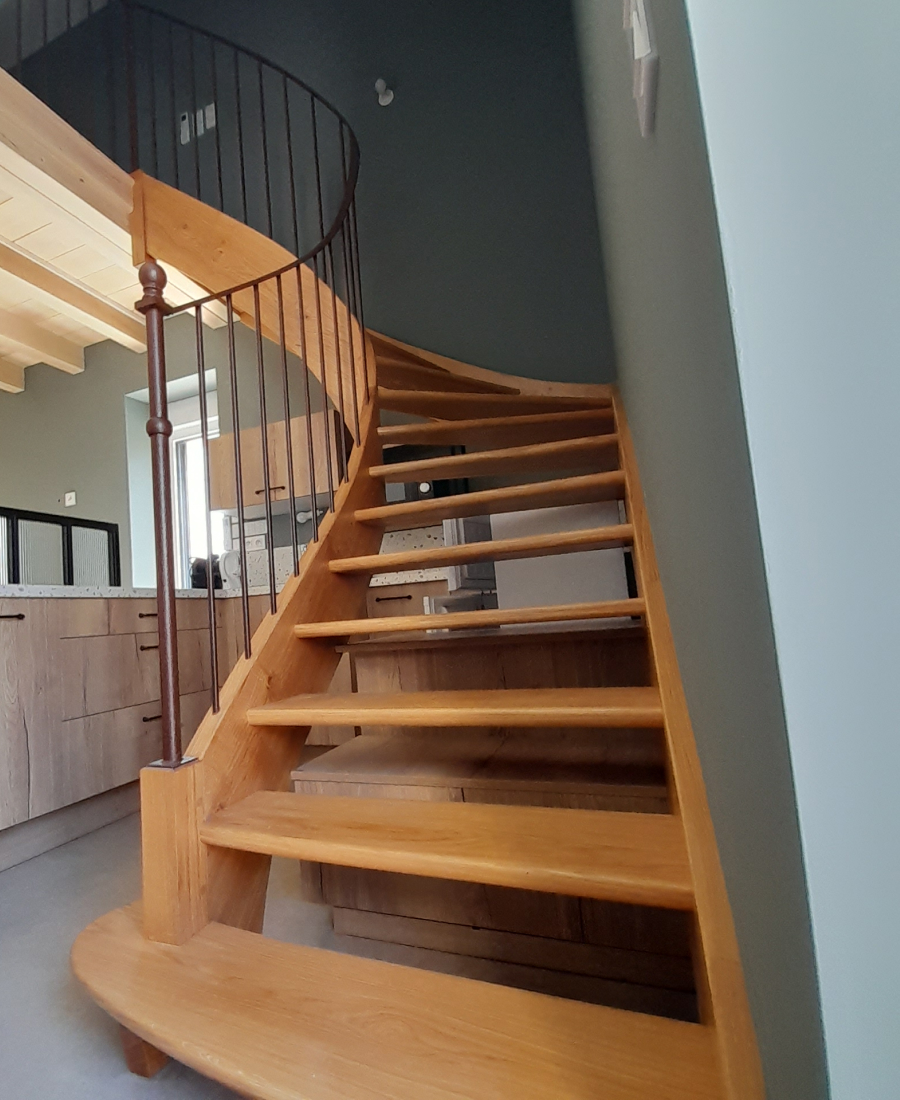 Escalier droit, tournant ou hélicoïdal : nous concevons votre escalier sur mesure, en bois ou mixte, pour l’harmoniser à votre intérieur tout en garantissant sécurité et confort.