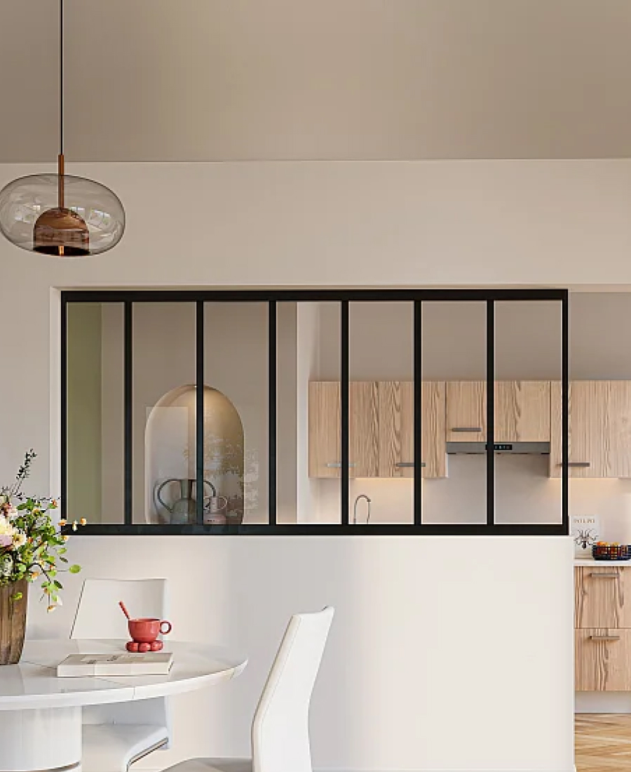 Apportez de la lumière tout en délimitant vos espaces avec une verrière au style atelier, idéale pour moderniser une pièce sans cloisonner.