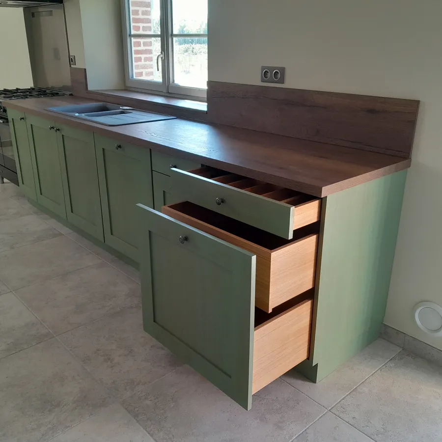 De la conception à la pose, nous réalisons votre cuisine équipée personnalisée. Un espace de vie fonctionnel et chaleureux, adapté à vos goûts et vos besoins.